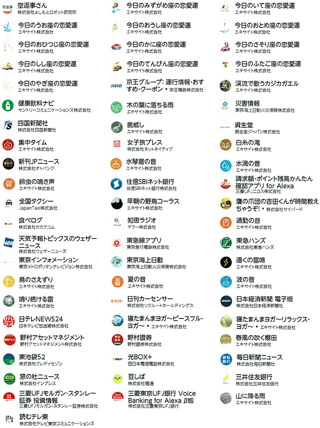 Amazon Echoで使えるAmazon Alexa スキルの一覧。Amazon Japanより日本での展開が発表されているものをご紹介。