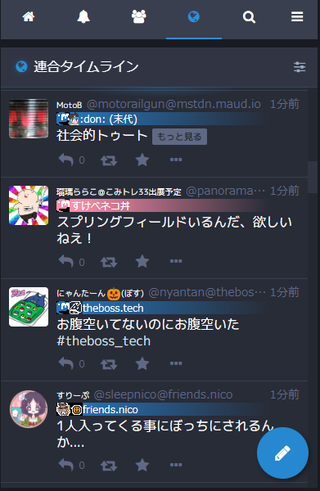 - 2018年12月09日 – 鯖缶工場 の Discord でのやり取りがきっかけで、閲覧アプリでの搭載の実現化に向け、API [14]を急遽用意し、Android用クライアントの Subway Tooter[15] さらには、デスクトップ用クライアントの TheDesk[16] の表示機能として搭載された(どちらも設定画面で有効に切り替える必要がある)。